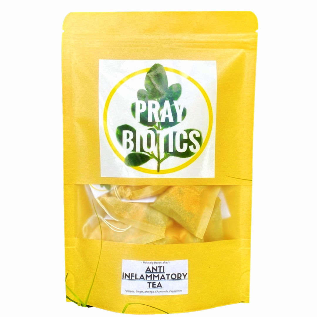 This herbal tea includes the most widely known herbal agents used for their anti-inflammatory properties. It will include chamomile, moringa, ginger, and turmeric.