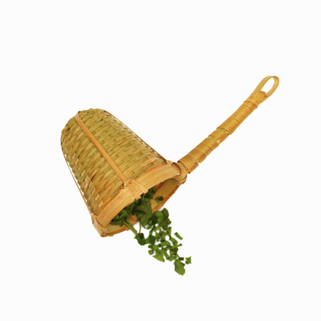 This bamboo tea strainer with a handle can be used to filter out loose tea leaves and brew your tea loose in the teapot.