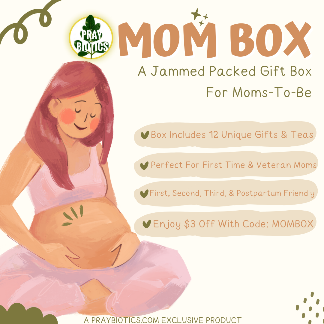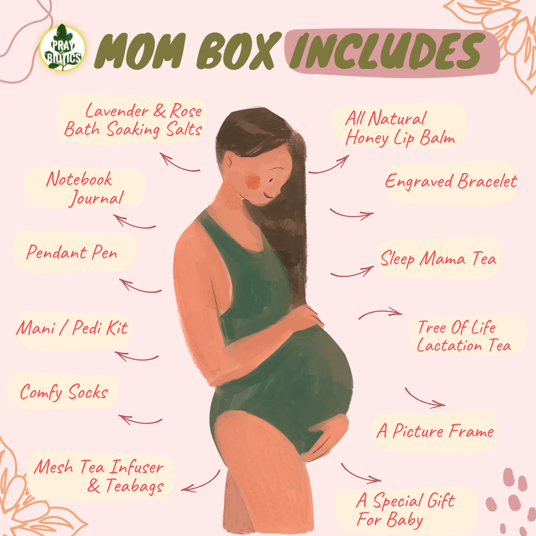 This time, gift her a MOM BOX, by Praybiotics. Our MOM BOX includes 11 unique items for Mom as well as one special gift for the little one. MOM BOX is crafted for both first-time and veteran moms alike. It's the box, built by a mom with moms in mind.
