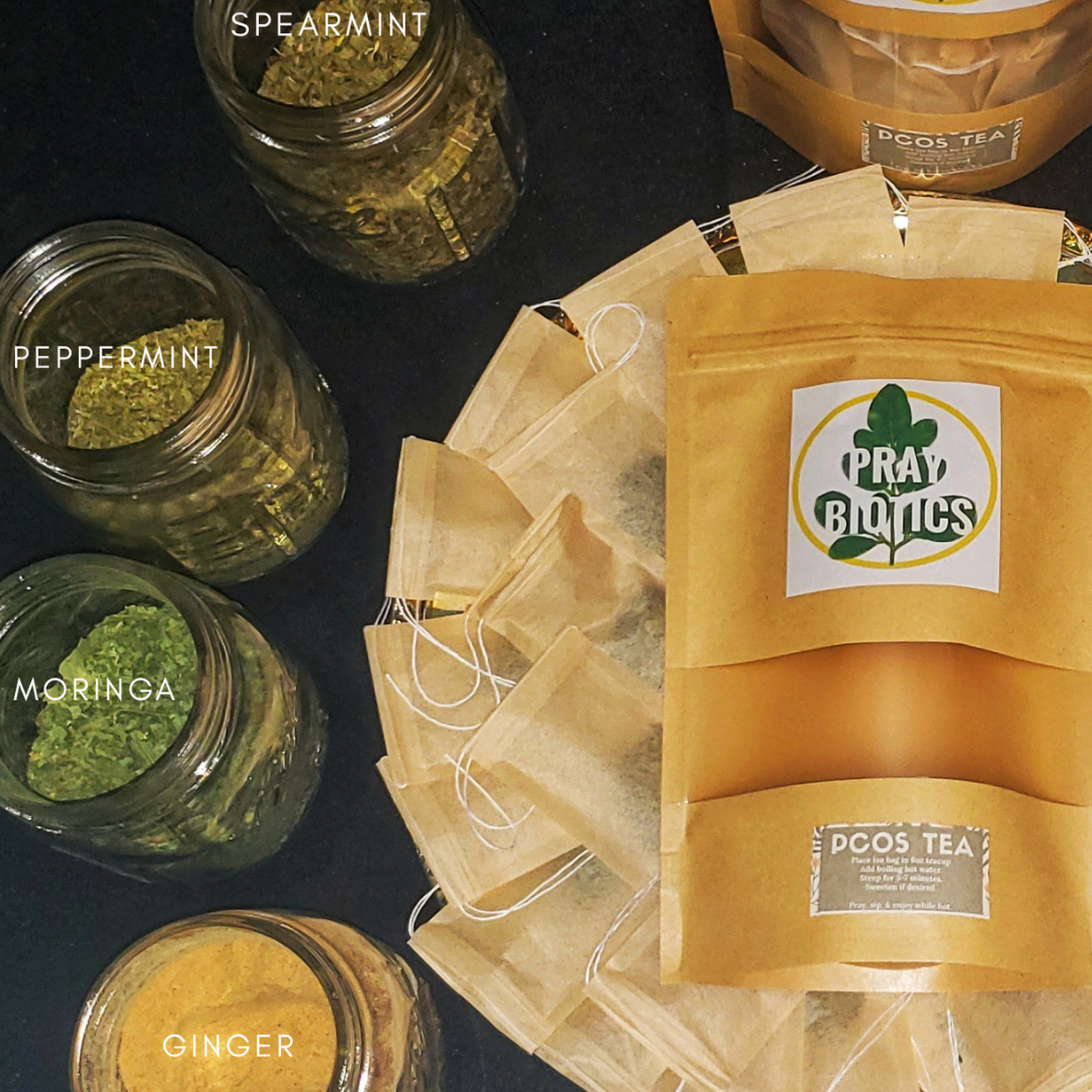 There are several herbal teas for PCOS that can help to reduce symptoms. If you are looking for ways to naturally help your PCOS symptoms, Praybiotics handcrafted herbal teas may be a good option for you. Praybiotics offers all-natural organic herbal teas that have benefits for PCOS like helping to improve insulin sensitivity, reduce testosterone, improve acne, reduce hirsutism, and promote ovulation. Praybiotics naturally handcrafted blend of herbal tea combines spearmint, peppermint, stinging nettle, chaste berry, chamomile, hibiscus, moringa oleifera, and green tea, all in which are some of the most beneficial herbal ingredients for alleviating, reducing, and treating many symptoms of PCOS. Every blend is formulated without any unnecessary additives, preservatives, or chemicals, as each herbal ingredient serves a direct purpose in your healing.