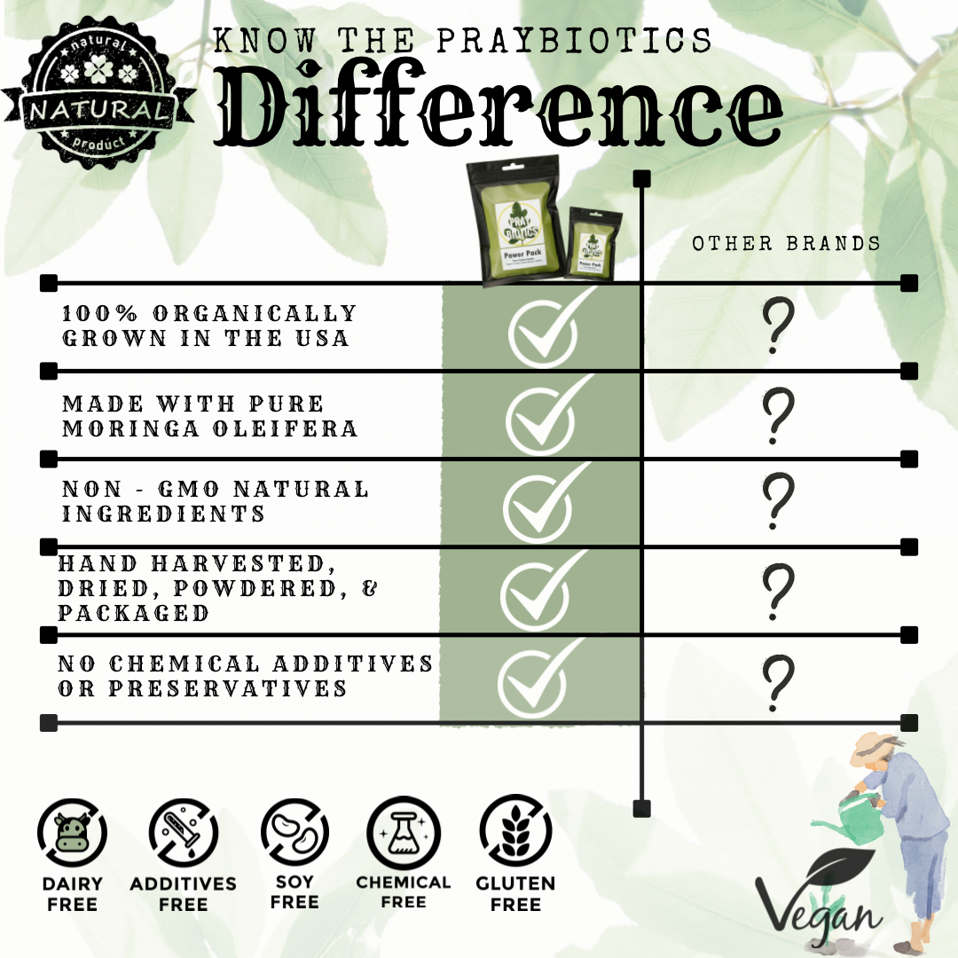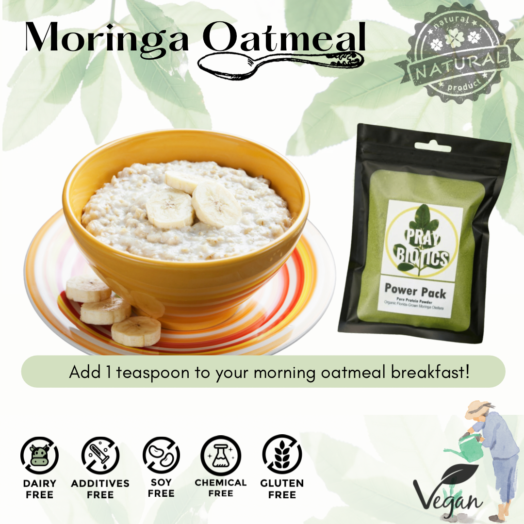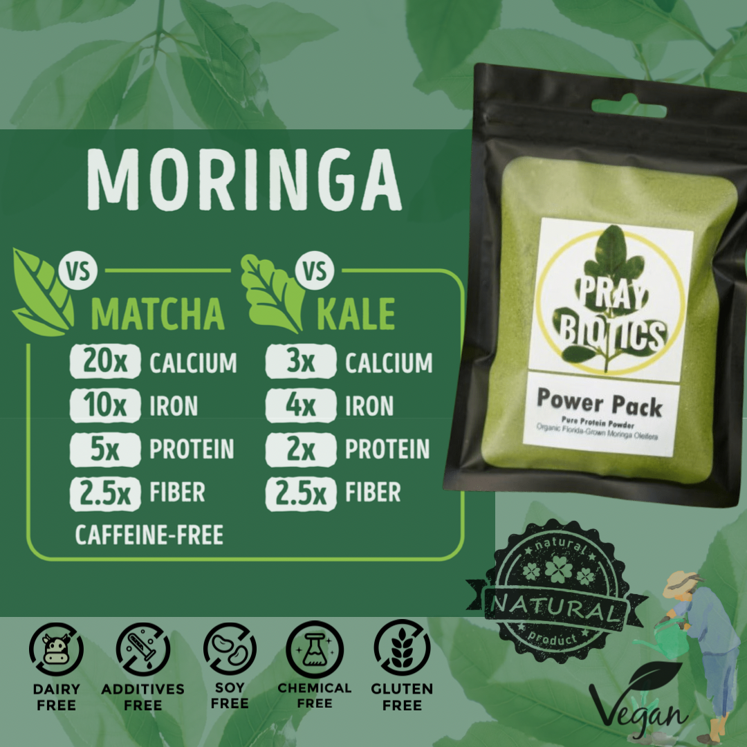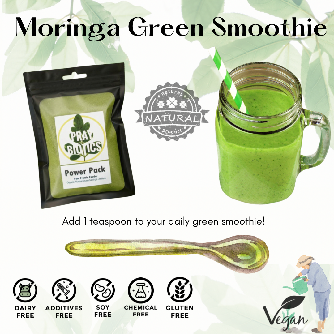This protein powder is made with 100% pure Moringa Oleifera which was organically grown, hand harvested, sun-dried, and powdered & packaged with love & care.
