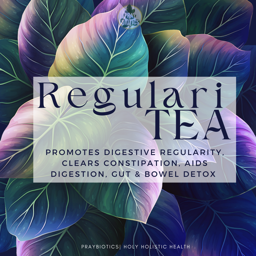 Praybiotics RegulariTEA is blended with herbal ingredients directly geared towards treating your ills, naturally and organically. Note* The herbs in this blend WILL position you for relief, so please keep near a restroom and drink water so as to not dehydrate your system as you pass water & toxins from your body while consuming this blend.