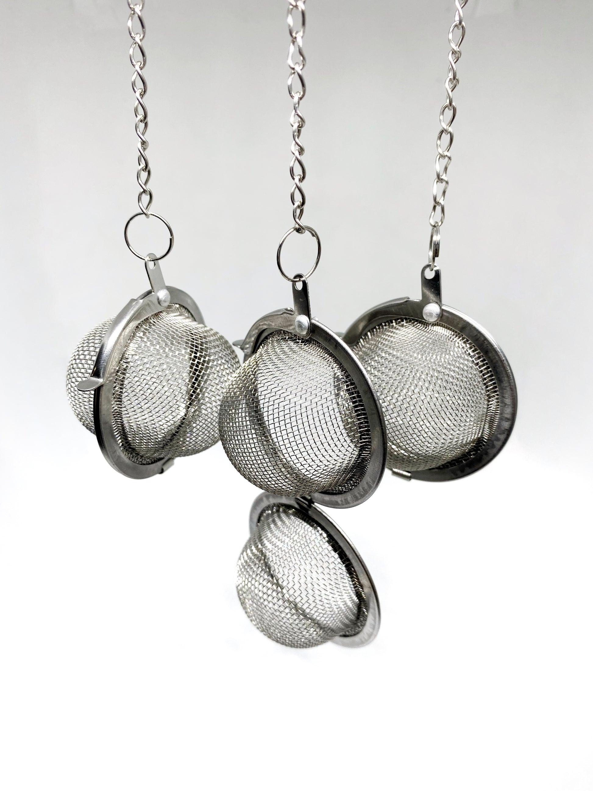 Our infusers are made with a rust-proof extra fine wire mesh screen that catches finer particles, and that ensures particle and debris free steeping. The attached chain allows you to hang the tea balls from a teapot, tea cup, coffee mug, panhandle or stockpot. These infusion strainers are easy to clean and dishwasher safe.